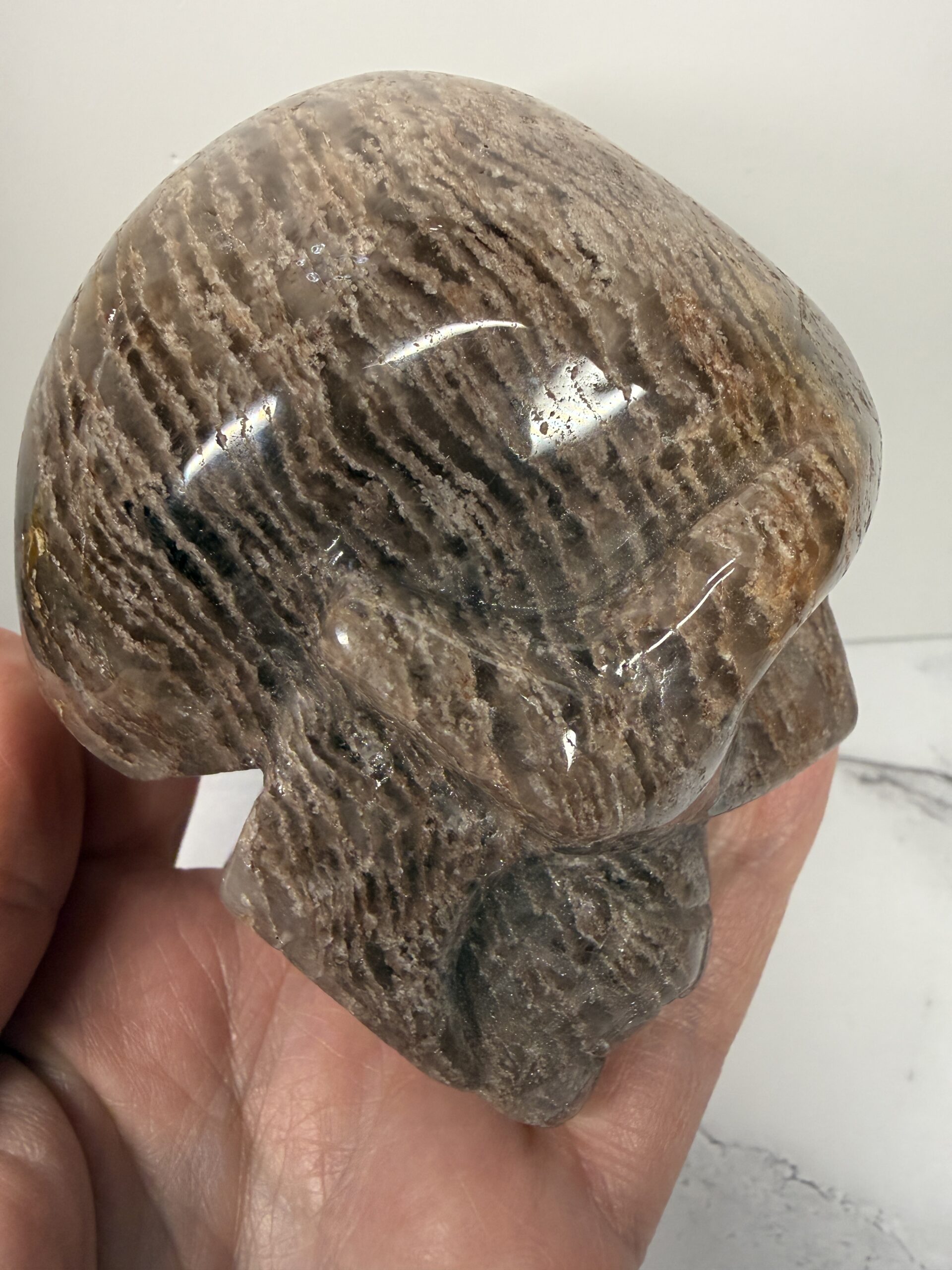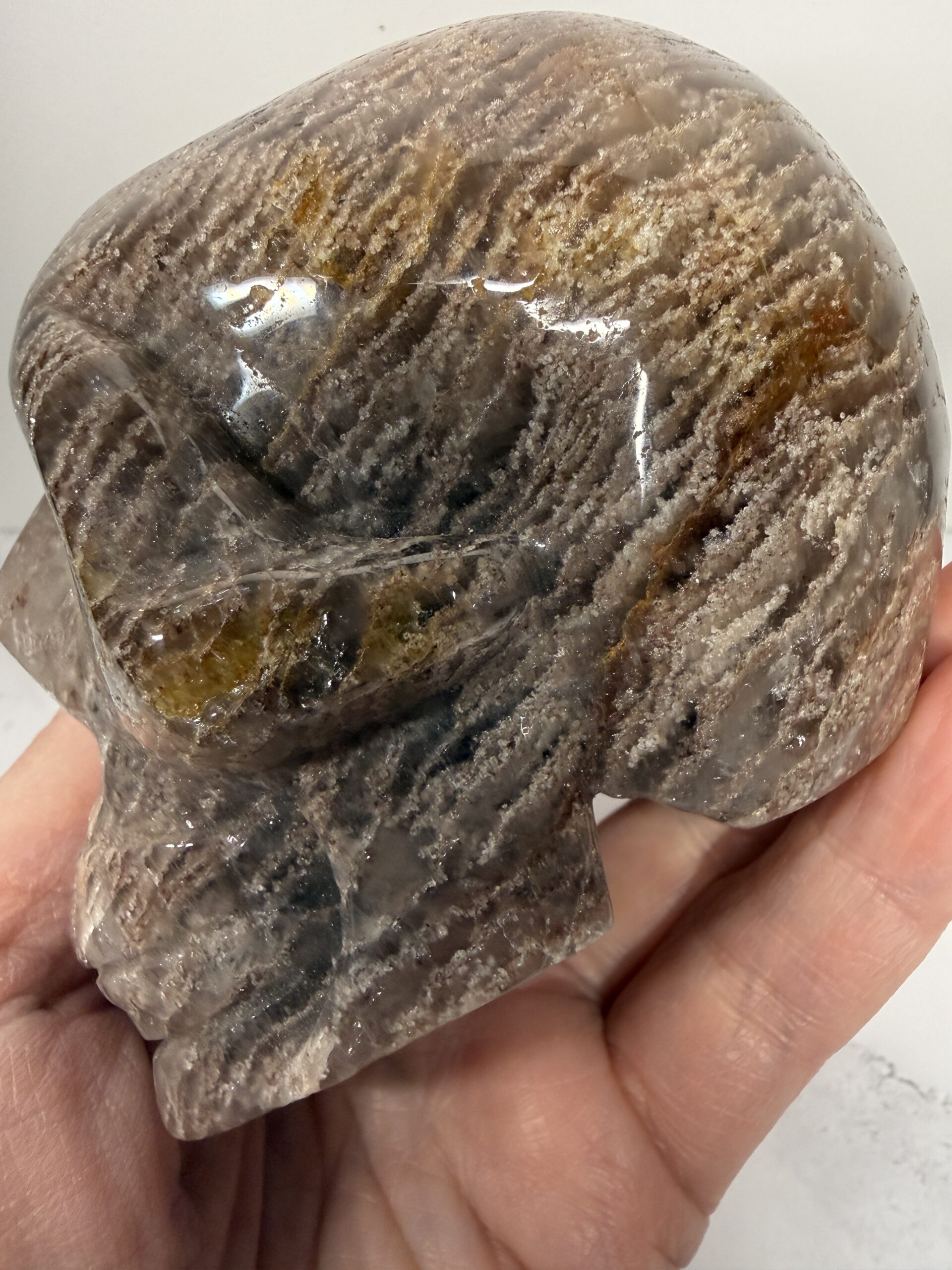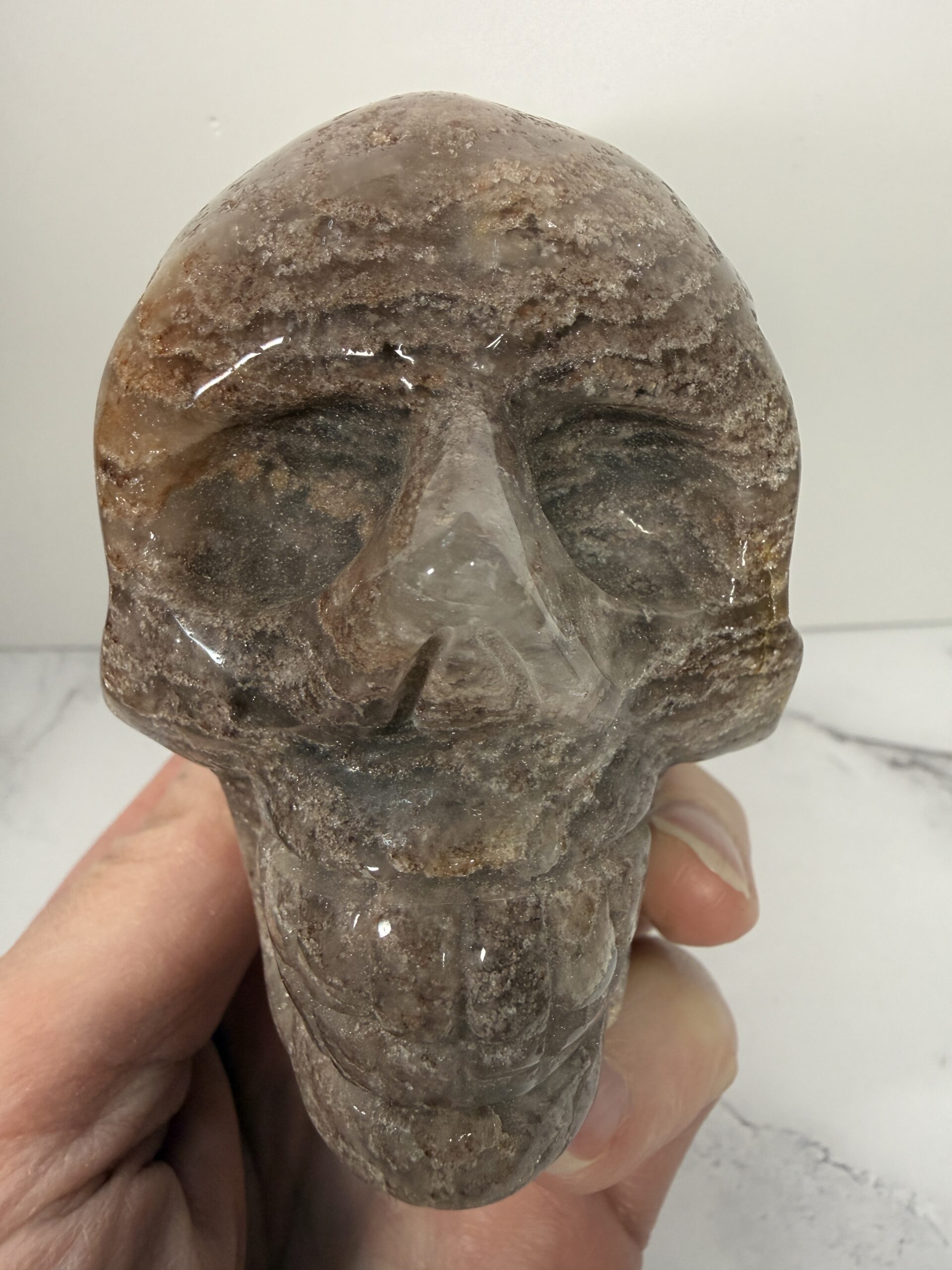 Thousand Layer Garden Quartz Skull Carving