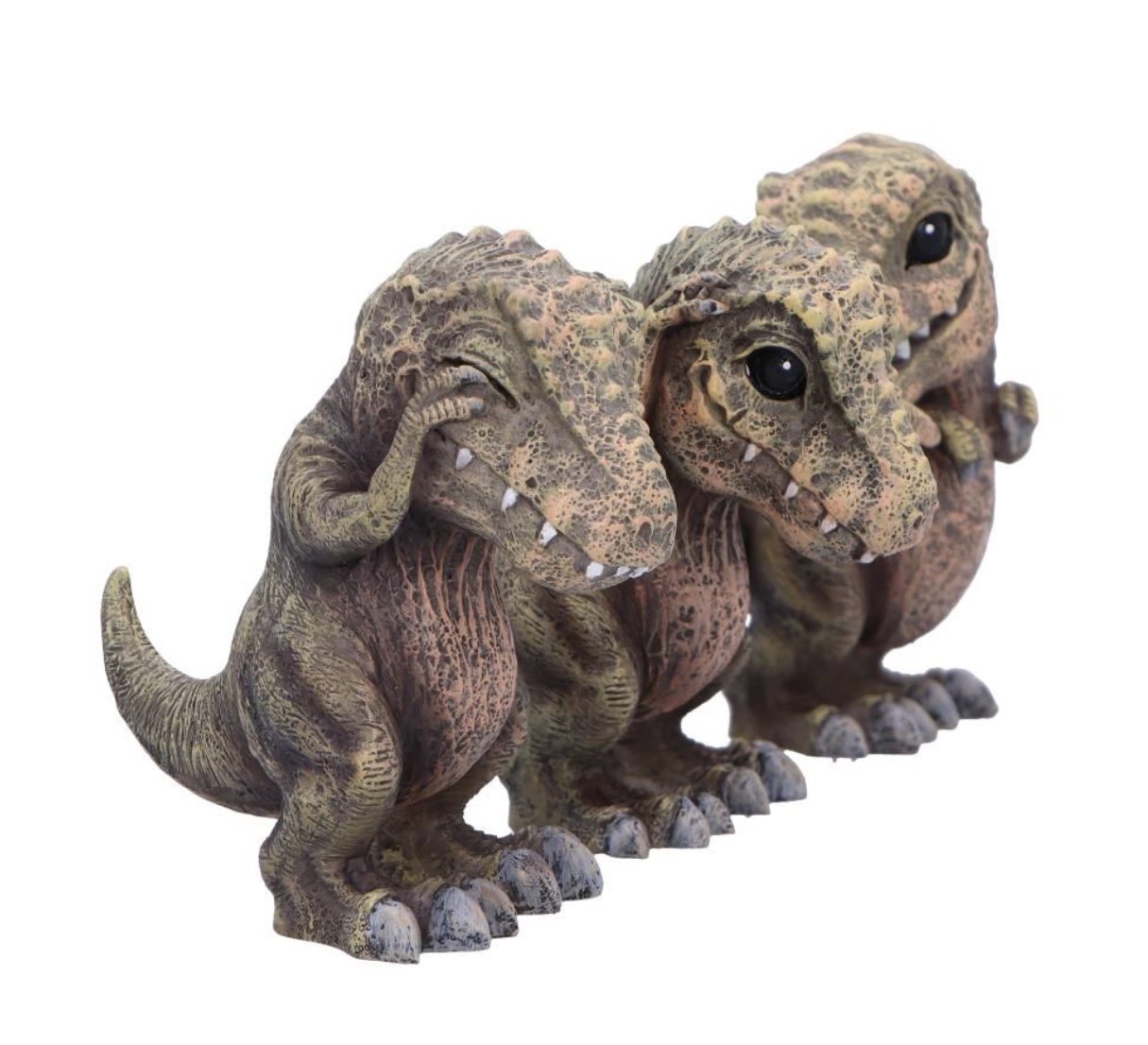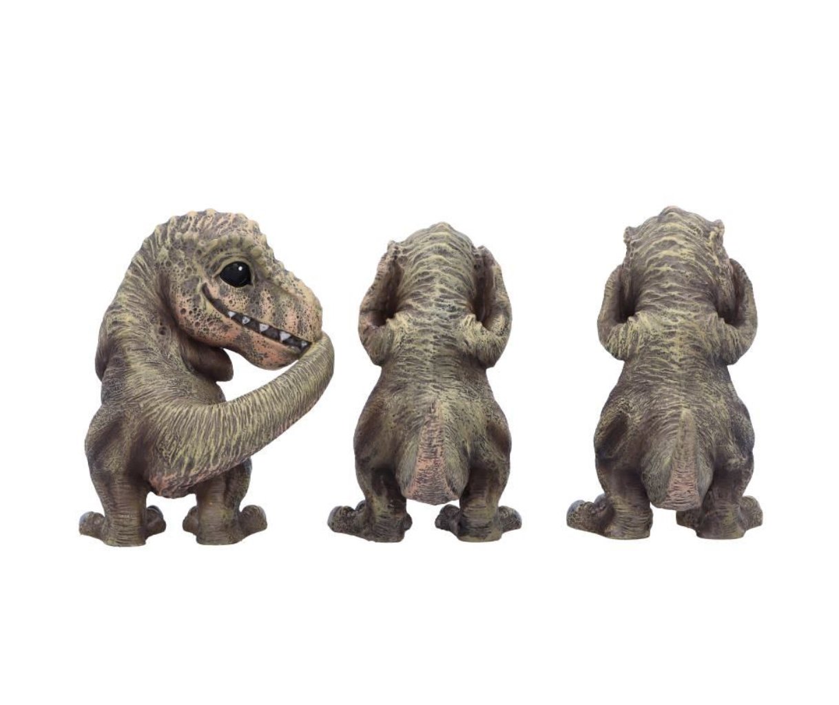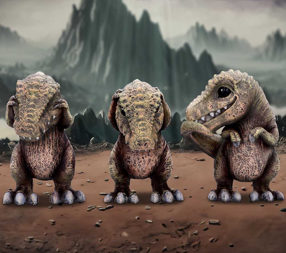 T-Rex’s in the iconic see no evil, hear no evil and speak no evil poses
