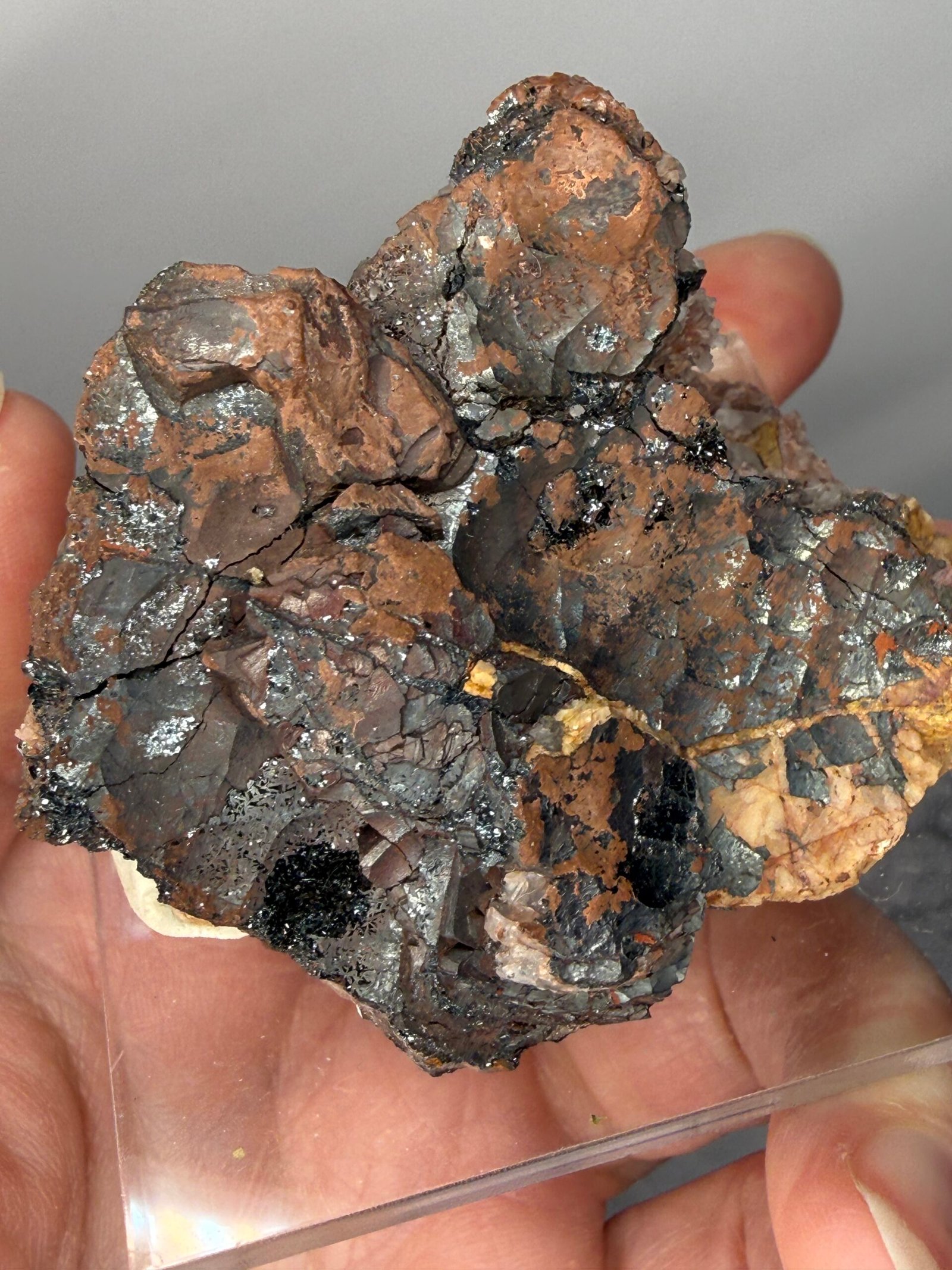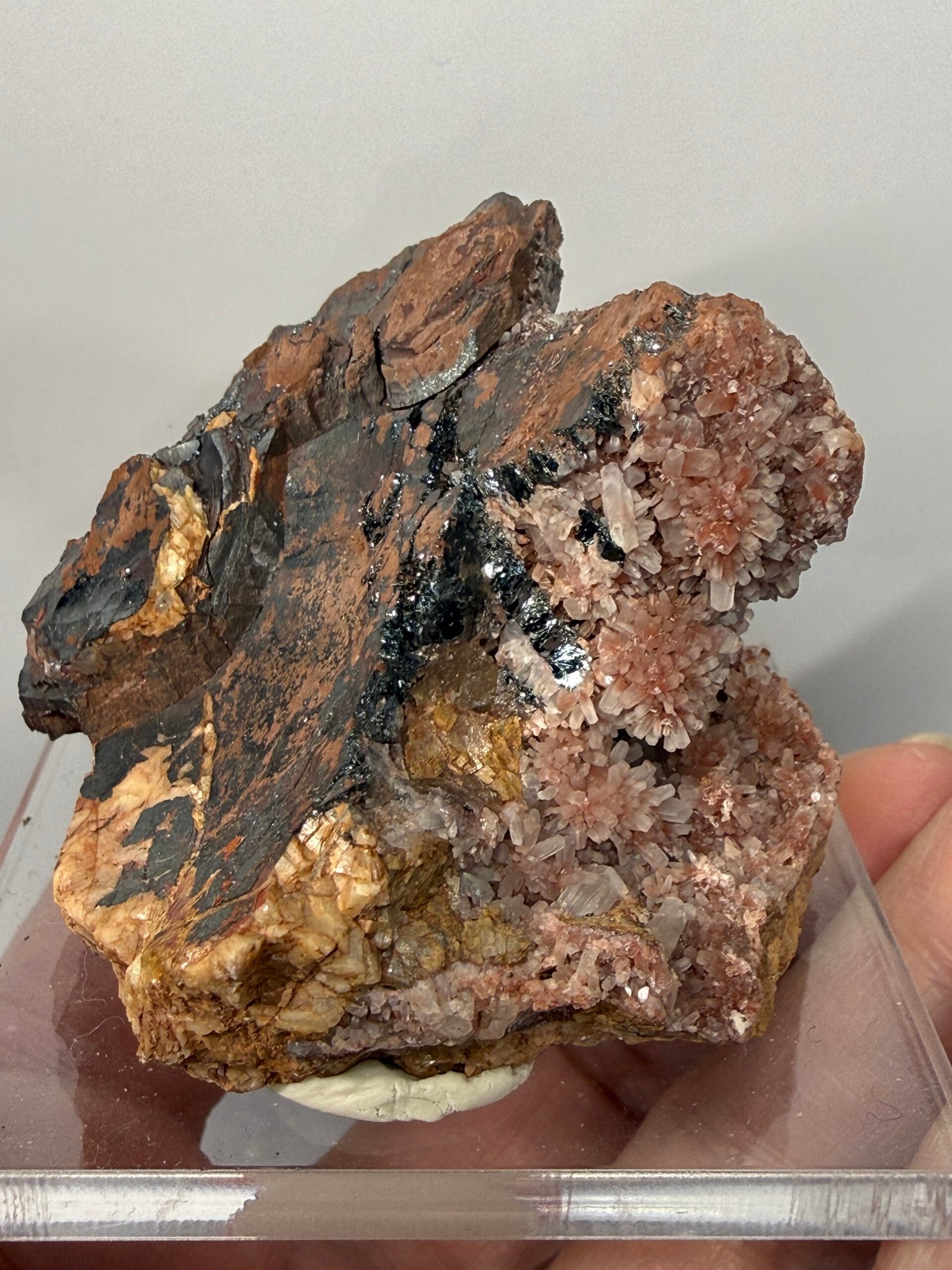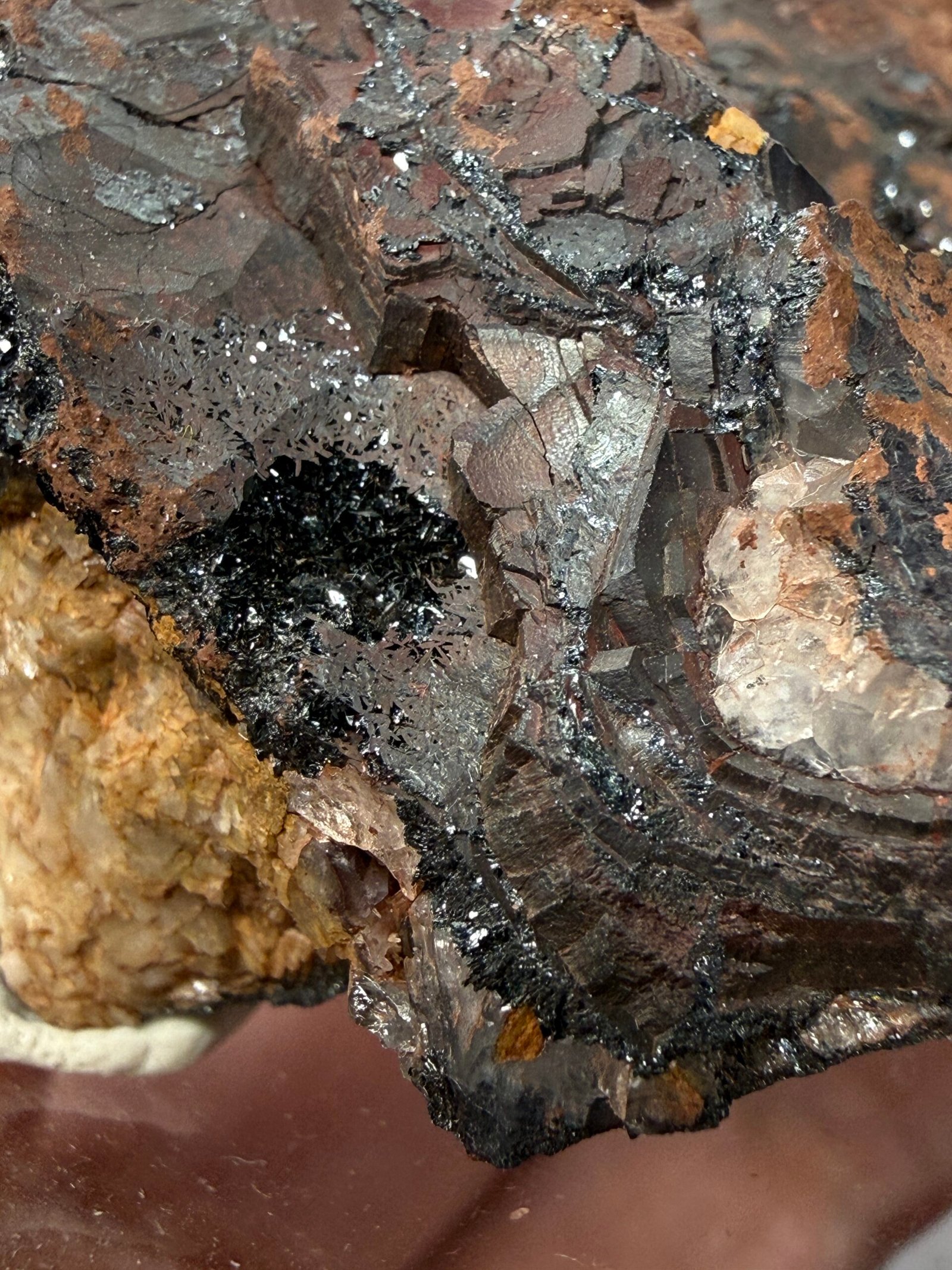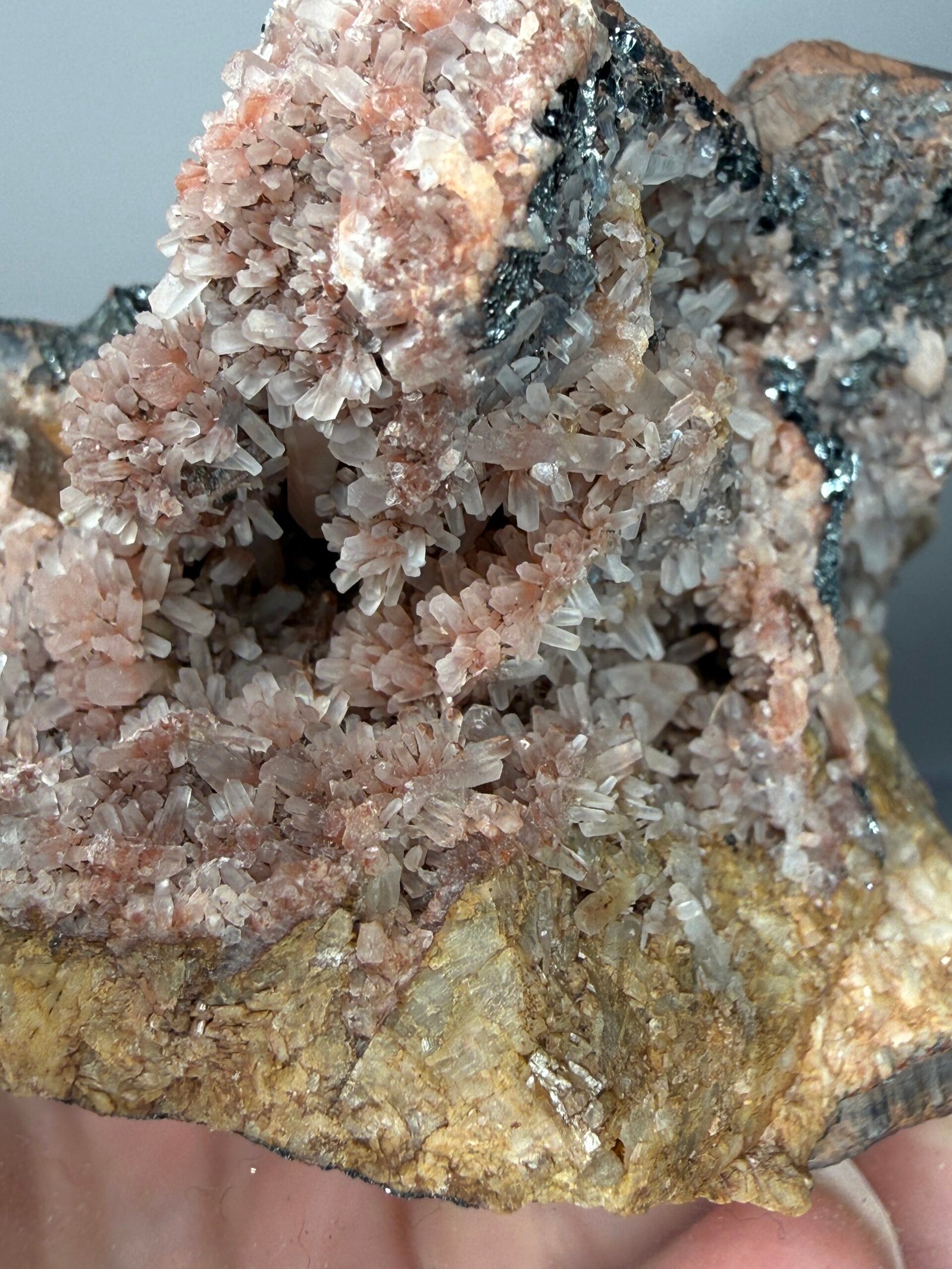 This incredible formation of nail head calcite is sprinkled throughout with patches of sparkling Specularite. I highly recommend checking this specimen out with a jewellers loupe or other magnifying tool, it’s so detailed and interesting.