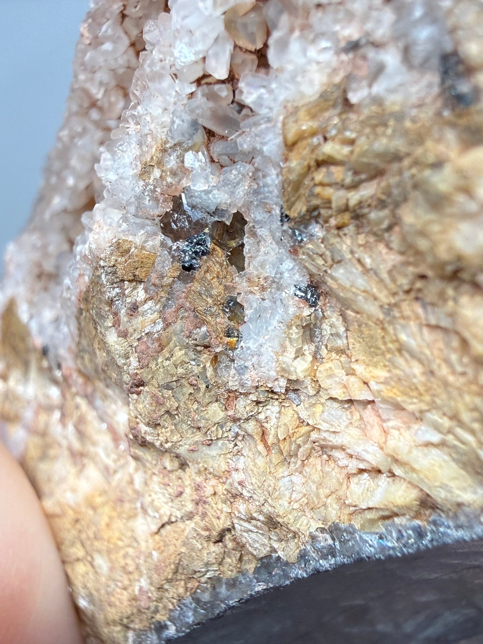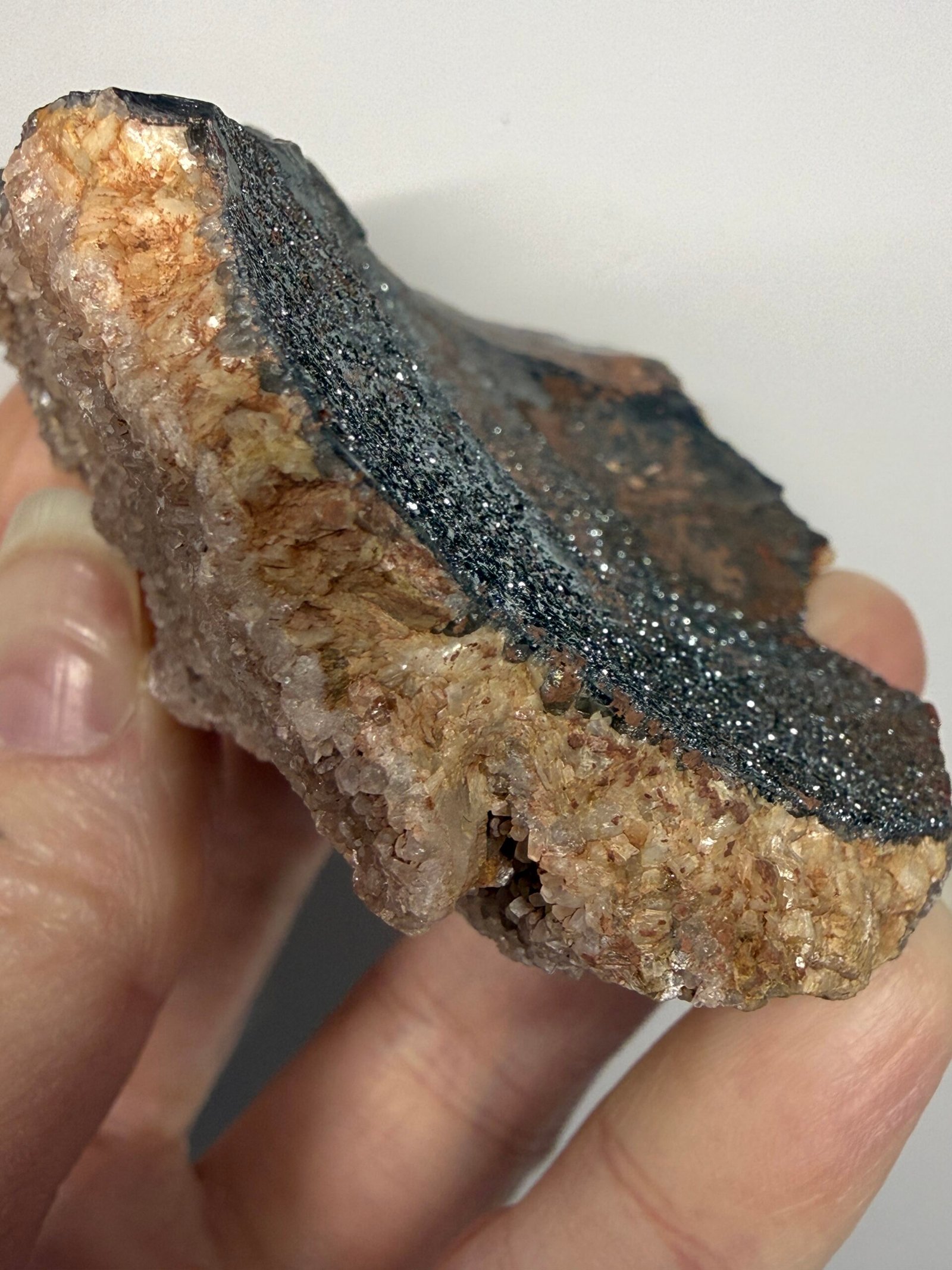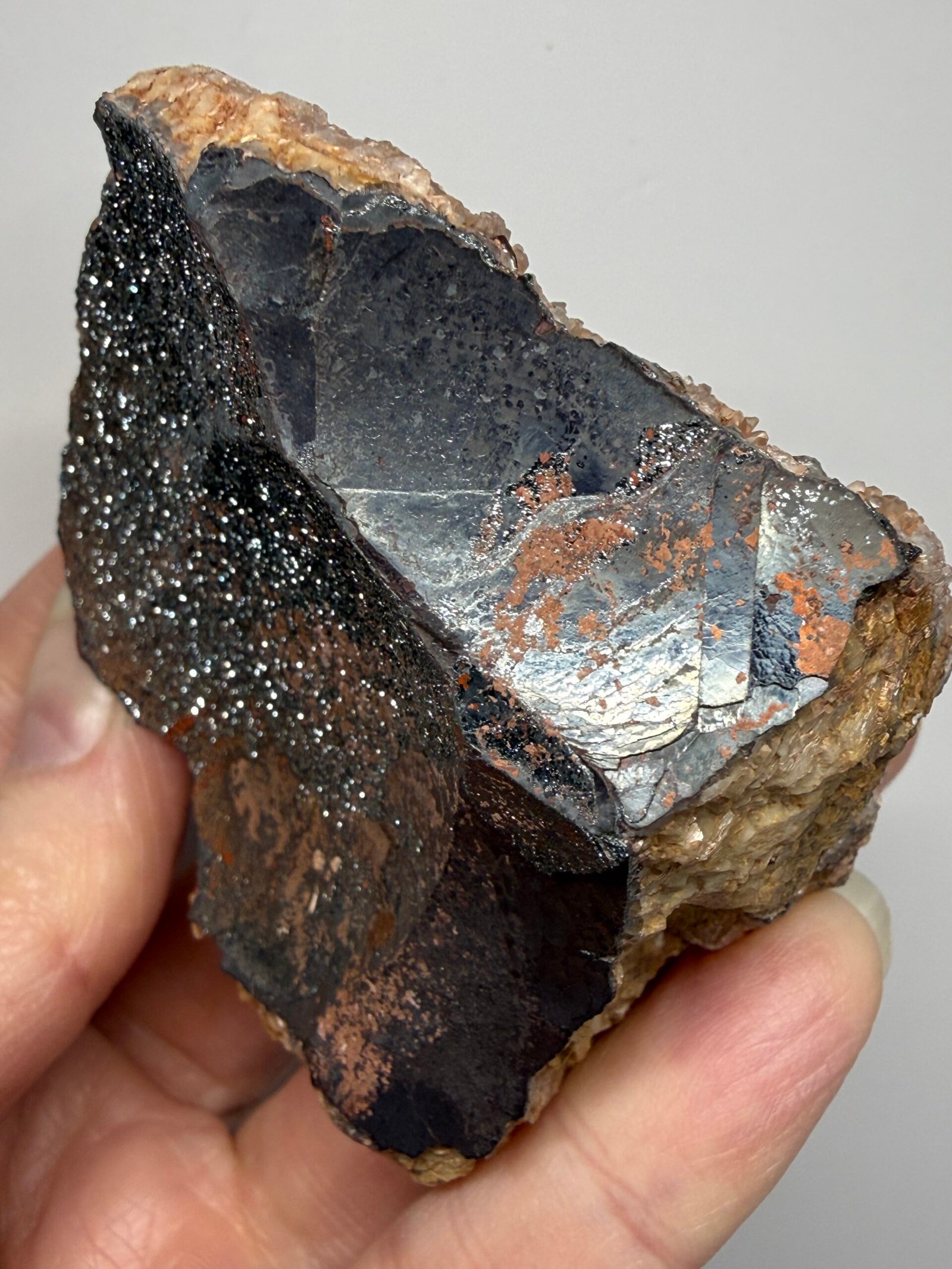 This is a great example of nail head calcite with Specularite and dolomite, very detailed and interesting to view from both sides.