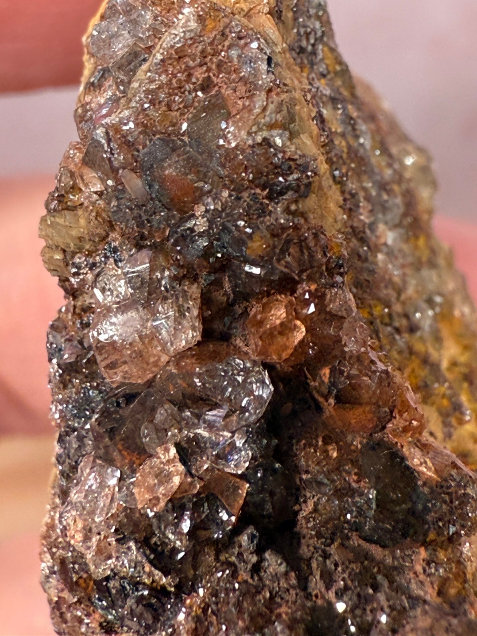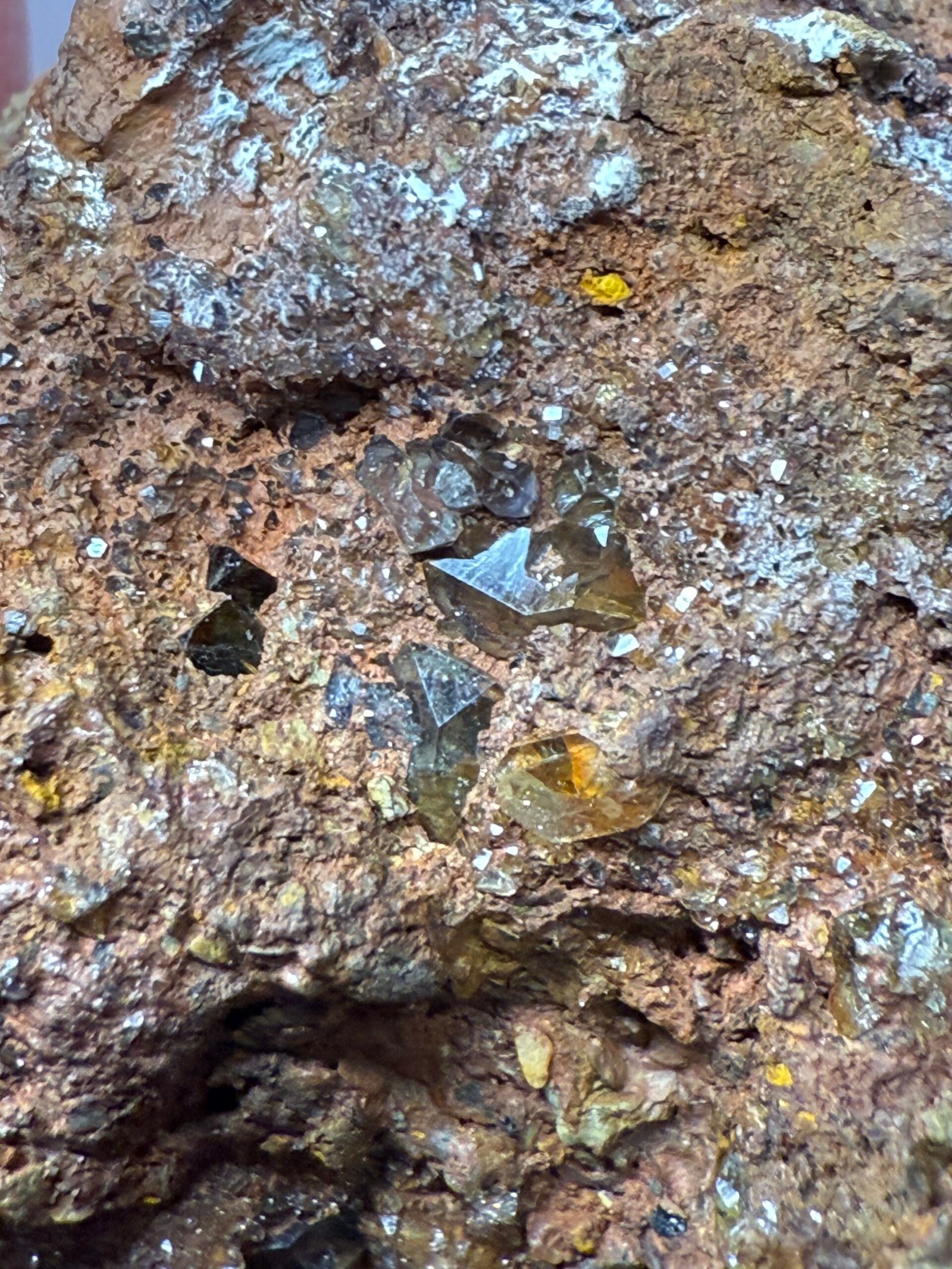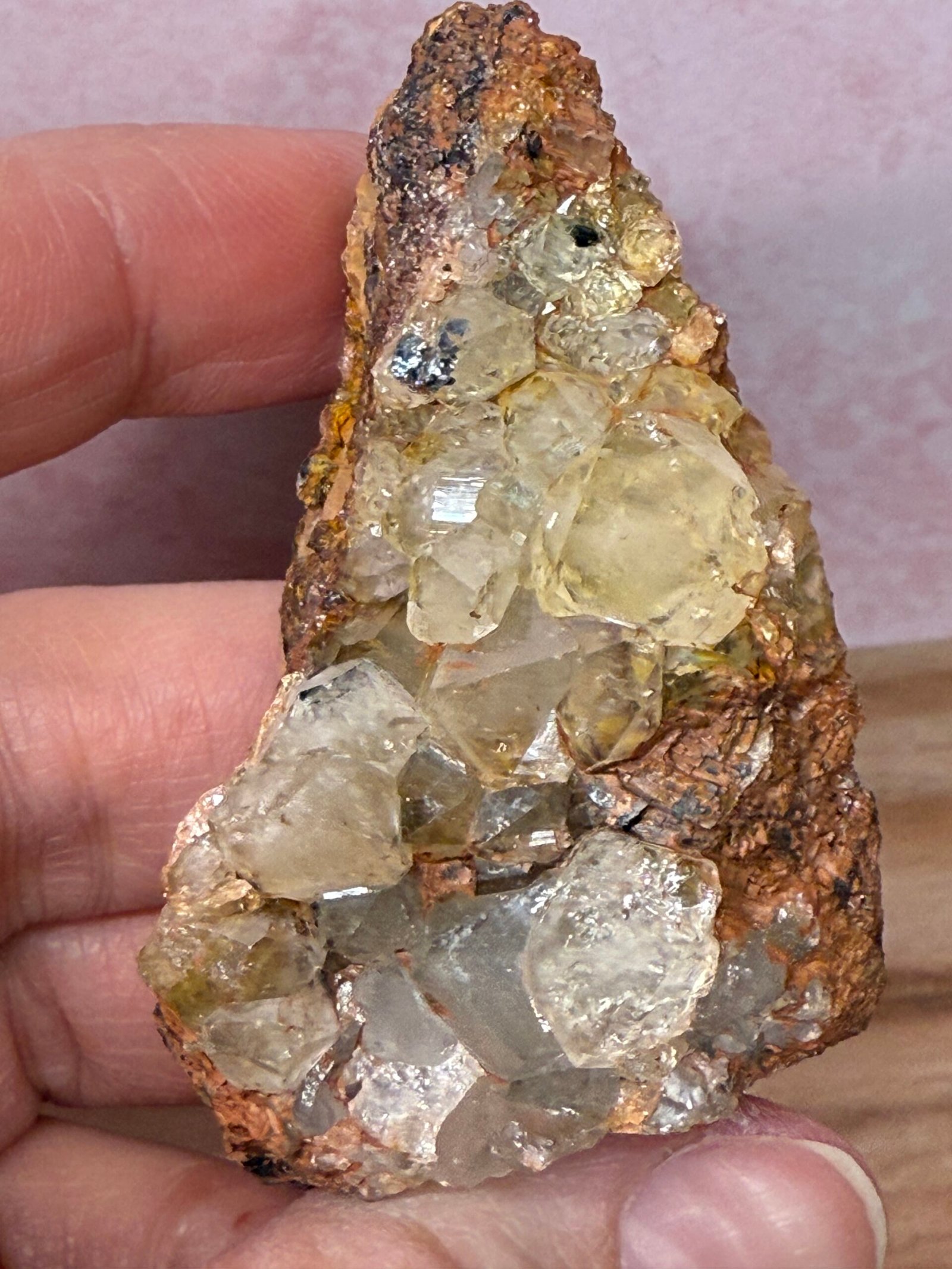 A beautiful example of smoky Quartz on limonite. hand minded.