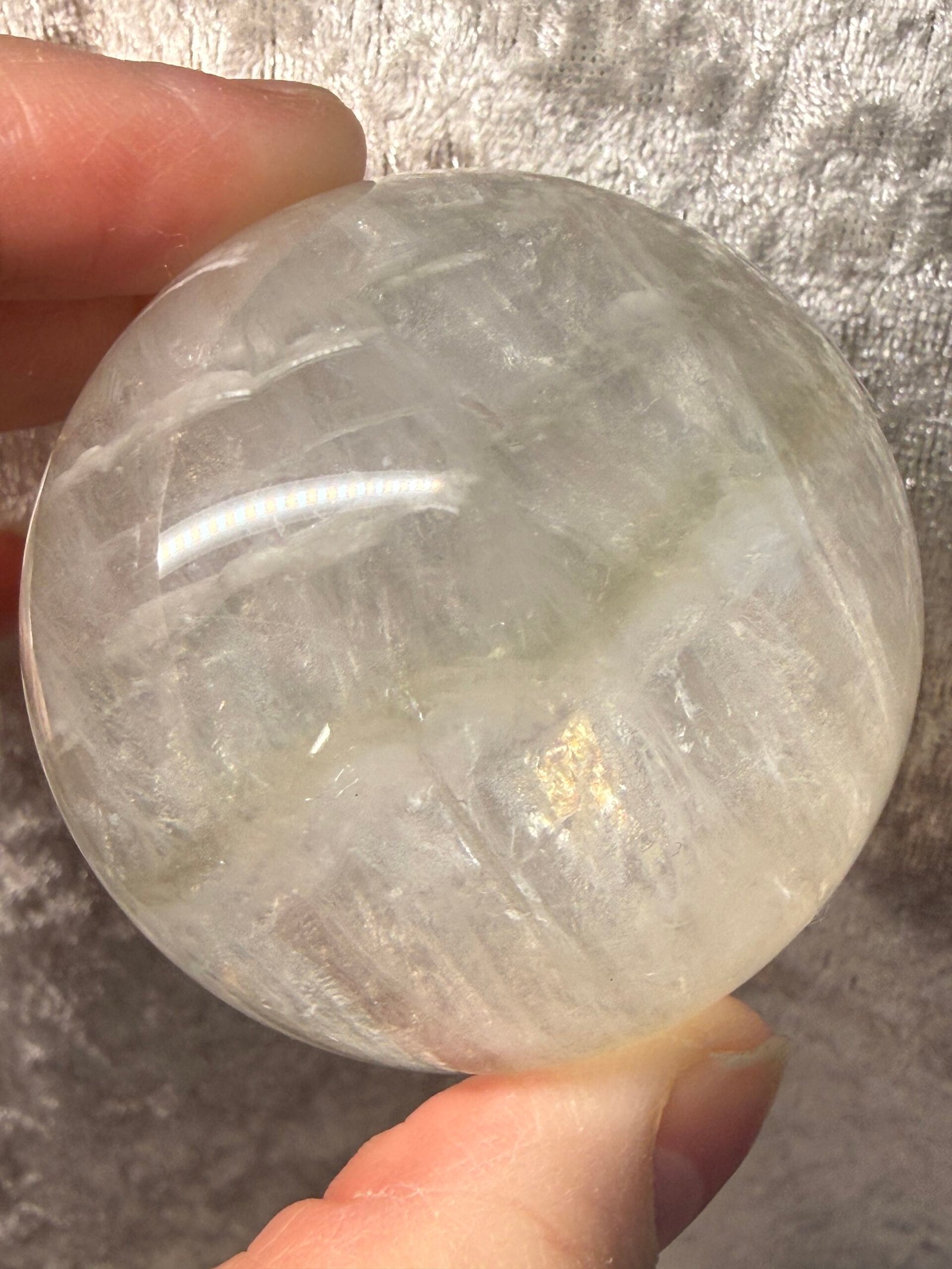 White fluorite, or clear/colourless fluorite, is the purest form of calcium fluoride (CaF2CaF2), often found in transparent cubes, clusters, or massive forms. Known as a “psychic cleanser” in crystal healing, it represents mental clarity, purity, and focus.