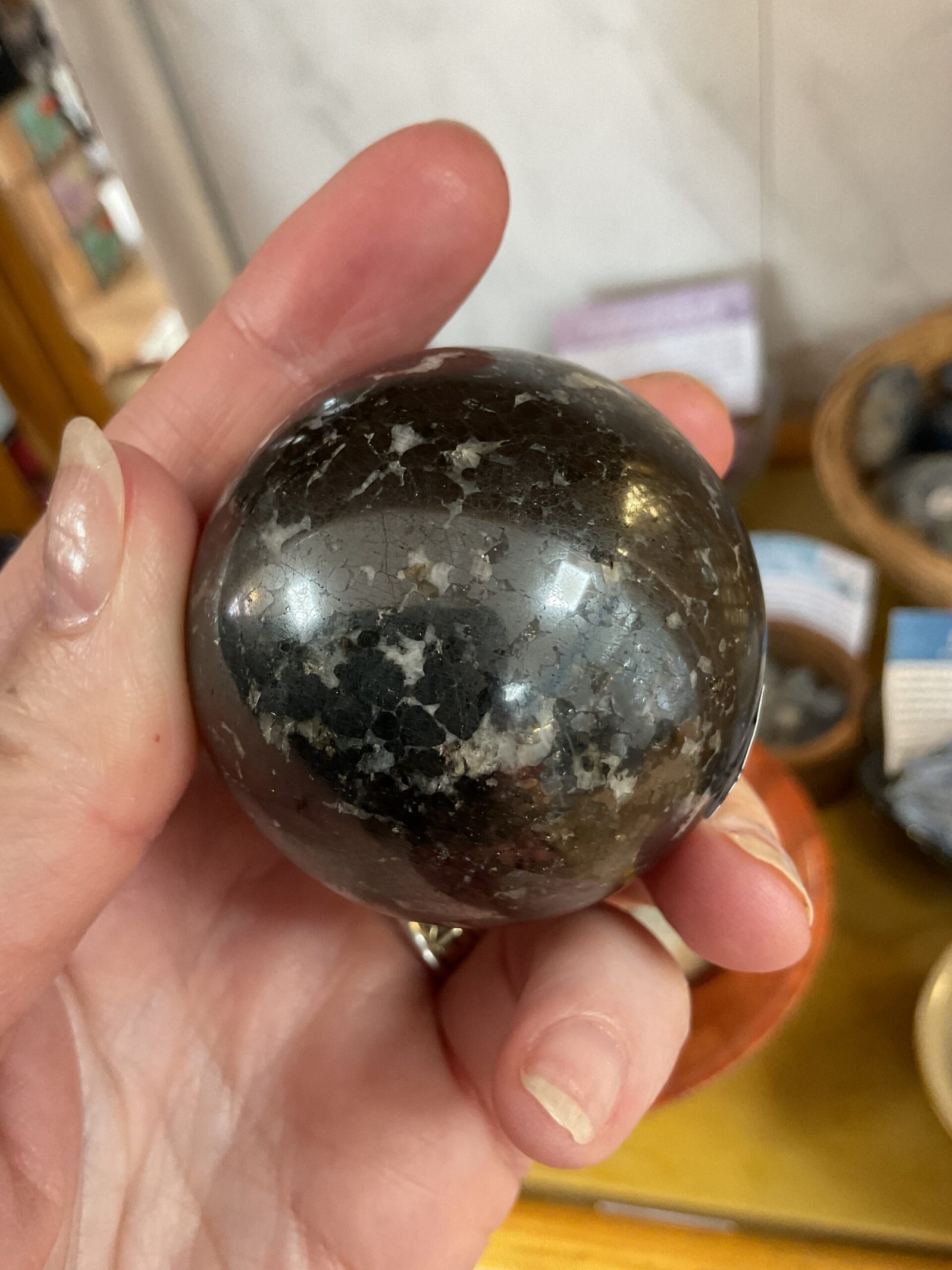 In natural light, franklinite is black, willemite is red, and calcite is gray. Under short wave ultraviolet light, franklinite is black, willemite is green, and calcite is orange.